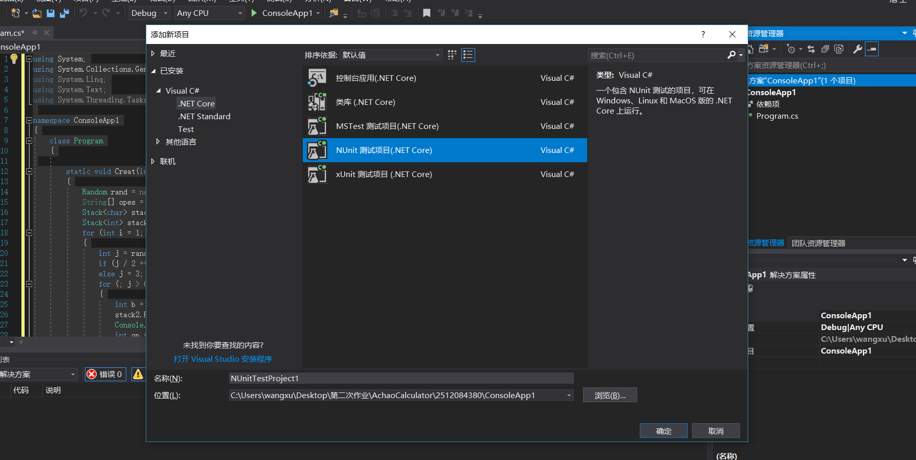 - 以前安装过vs2010,因为这次作业要求就卸载了2010版本重新安装了vs2017。通过百度网盘进行队Visual Studio的下载。输入链接:https://pan.baidu.com/s/1jJXyRMA;密码为: ub6c。下载完成后选择.NET开发环境,然后根据提示完成安装,过程如下。