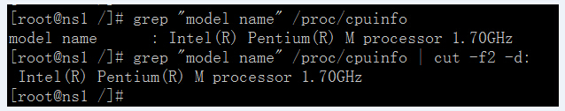 grep "model name" /proc/cpuinfo | cut -f2 -d: