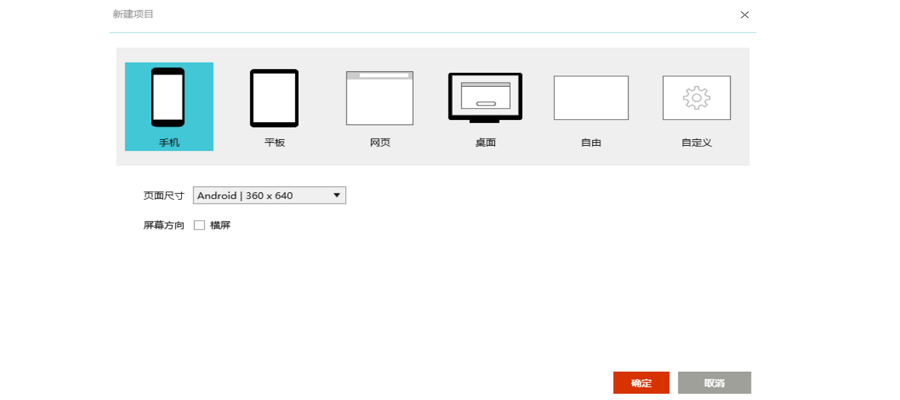 打开Mockplus,点击新建项目,选择“手机”项目类型与合适的页面尺寸,点击“确定”即创建成功,是不是不能更简单!无需任何文件创建操作,无需输入任何文字!