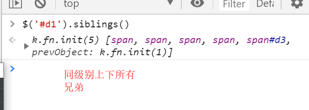 $("#id").children();// 儿子们(不包括孙子) $("#id").siblings();// 兄弟们(同级别上下所有)