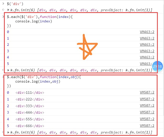 li =[10,20,30,40] $.each(li,function(i, v){ console.log(i, v);//index是索引,ele是每次循环的具体元素。 }) 0 10 1 20 2 30 3 40 原理:把li里的每个元素循环出来交给函数