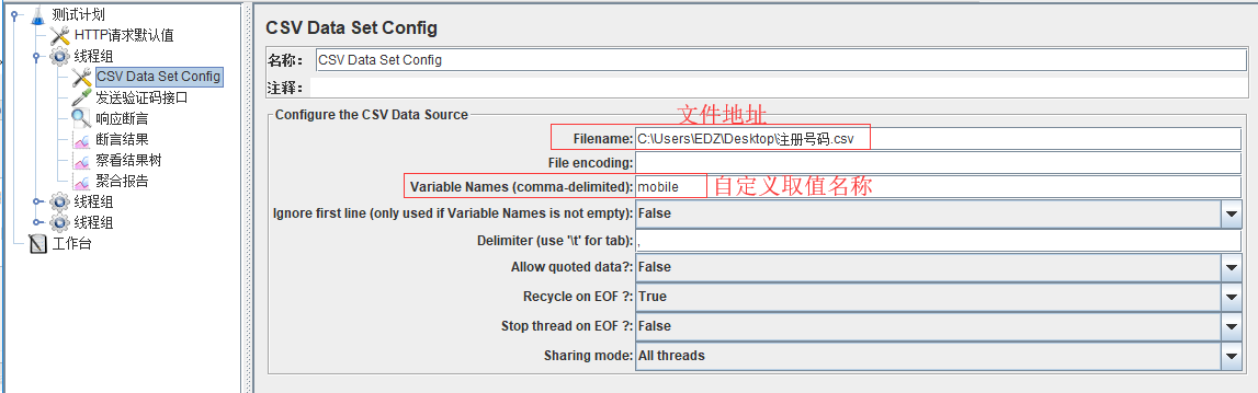 2).将csv文件导入至Jmeter