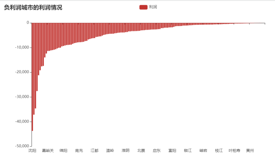 1.从省的利润看出沿边沿海地区的利润不错,多为正利润。而为负利润的地区多为内陆地区,如四川、甘肃、湖北地区。从各市的利润可看出,在内蒙古、四川、甘肃省的有销售的城市比较少,所以这几个省的利润是负利润受销售城市的影响。但浙江、江苏、辽宁省份销售的城市多,但这三个省是负利润,则说明这三个省的销售利润是真正的负利润,需要重视。