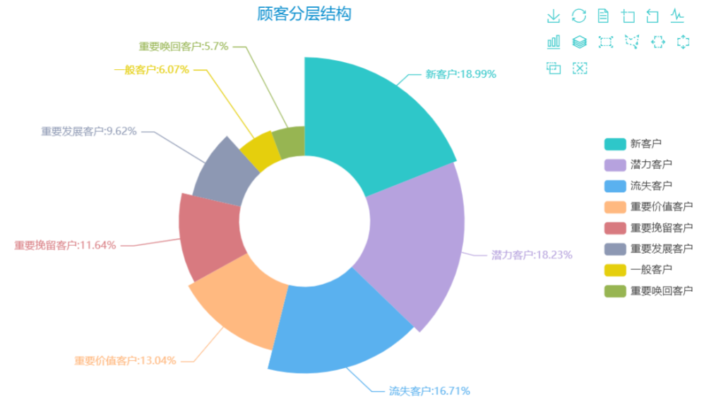 客户分层结构,8种类型客户人数占比