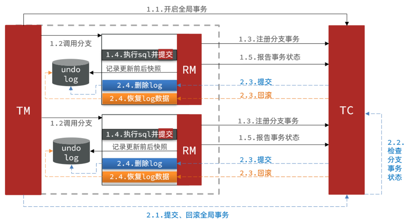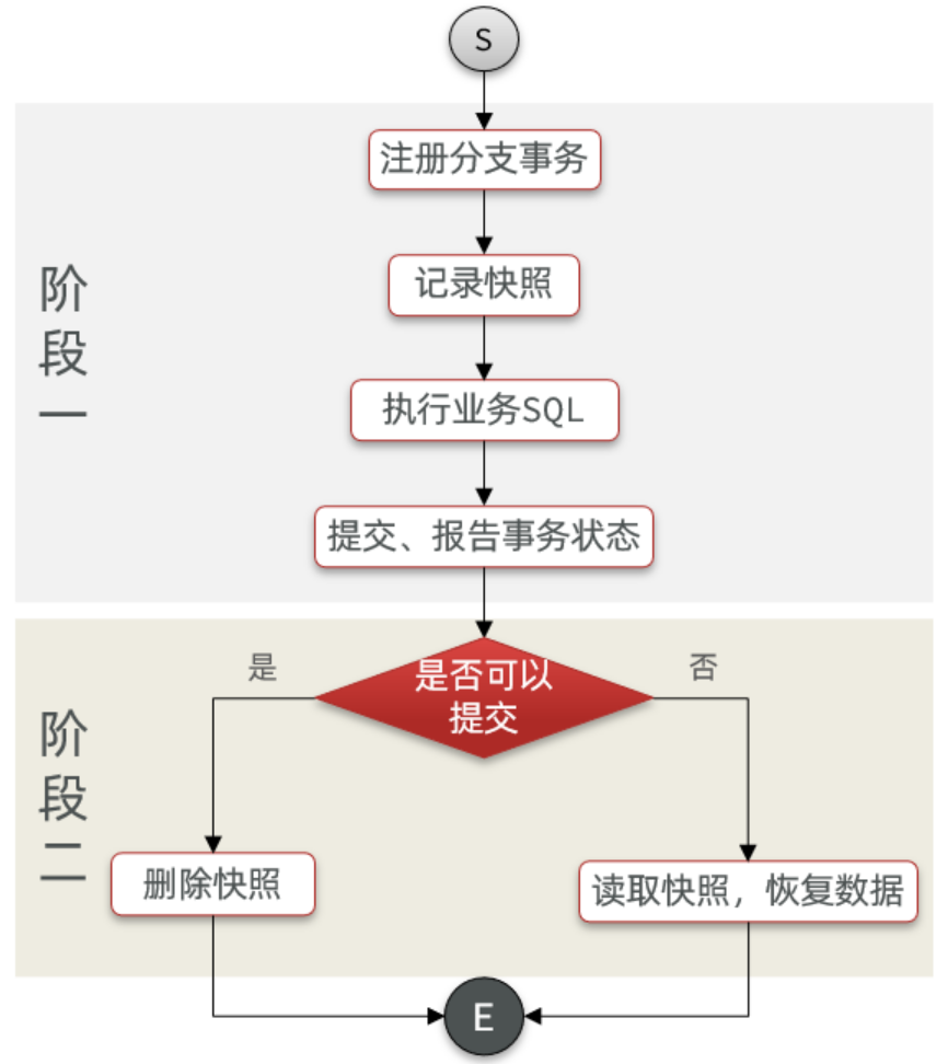 b)如果有分支事务失败,则需要回滚,根据快照恢复数据。