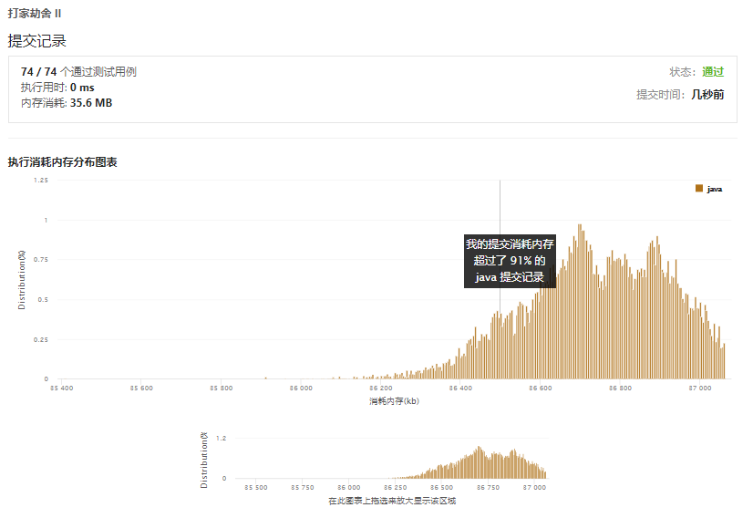 但是因为是环形的,所以需要判断两次,一次是从 0 到 length - 2范围内的最大值,另一次是 1 到 length - 1的范围内的最大值。取两者中的大值。