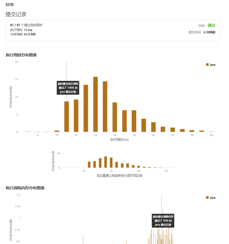 给你一个二维数组 wall ,该数组包含这堵墙的相关信息。其中,wall[i] 是一个代表从左至右每块砖的宽度的数组。你需要找出怎样画才能使这条线 穿过的砖块数量最少 ,并且返回 穿过的砖块数量 。