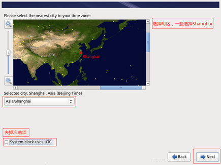9. 选择时区,一般都会选择上海(Shanghai),下面的直接去掉选项。