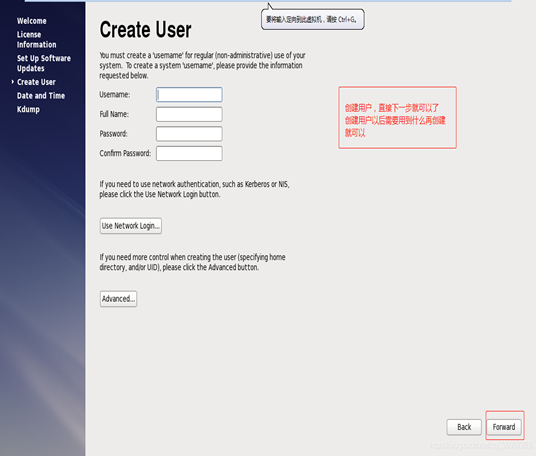 20.这一步时让你创建用户,直接跳过也行,以后有需要我们通过命令创建即可。
