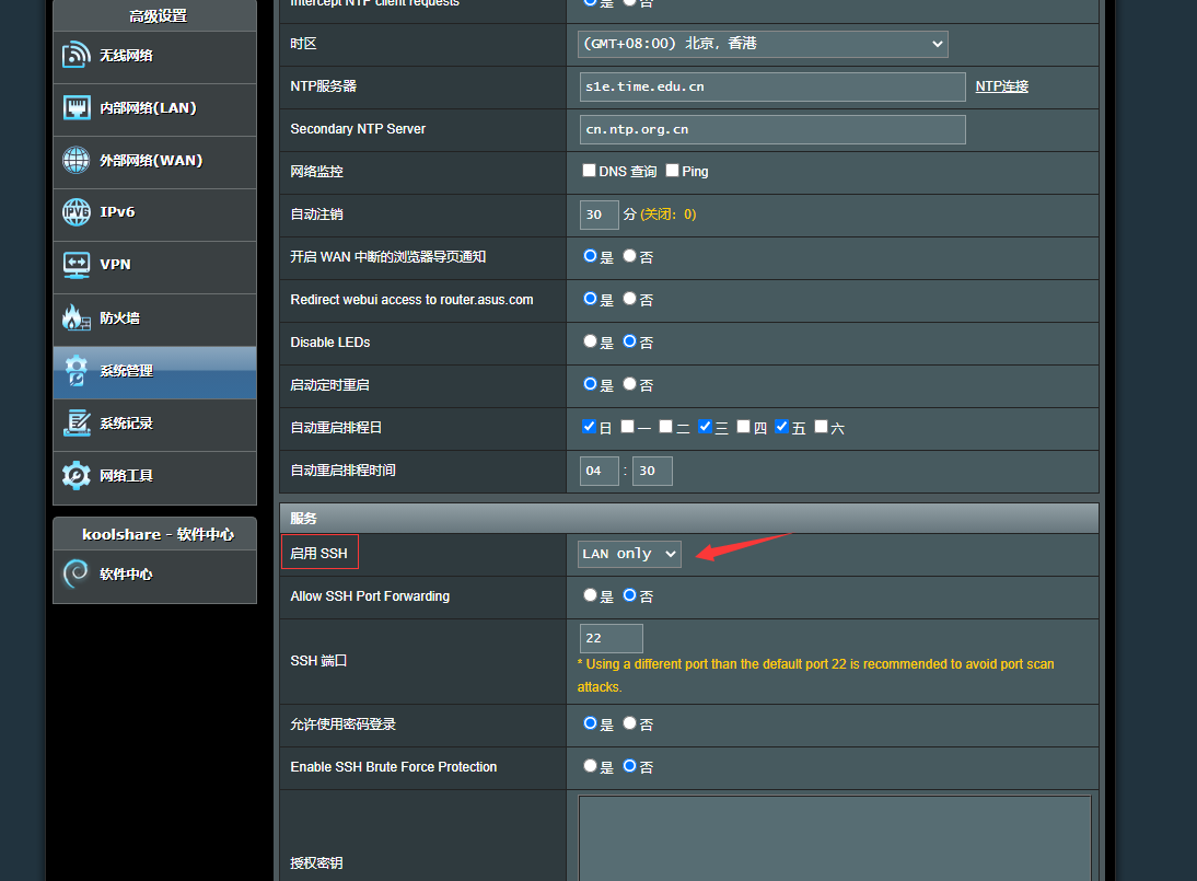 方法:先在路由器后台开启ssh登录,然后用xshell、putty等软件登录,用户名密码就是网页端后台的用户密码