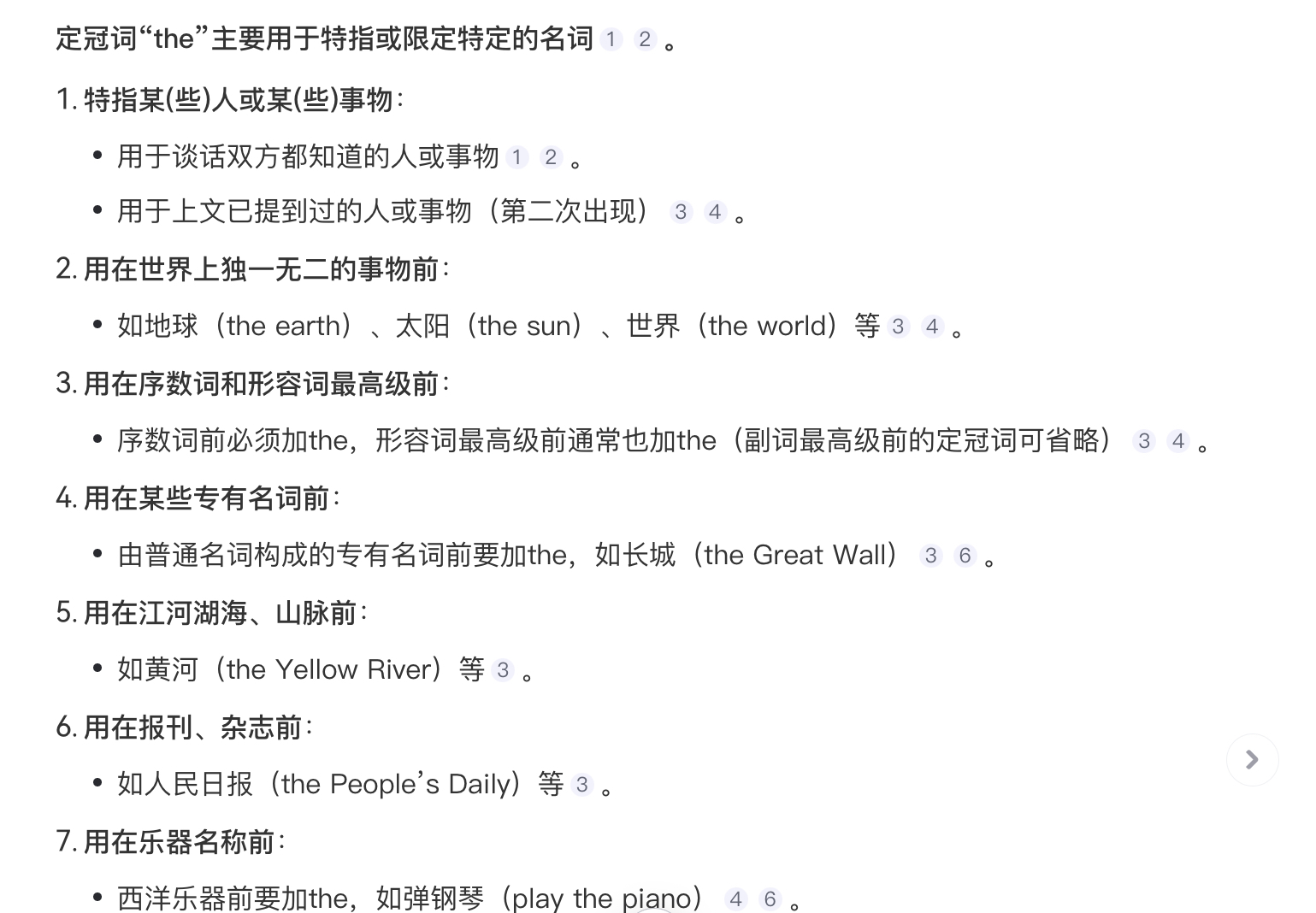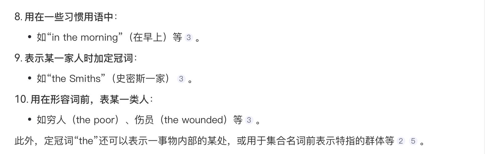 其他用法:定冠词还可以用于复数名词、不可数名词、序数词、形容词最高级等。例如: