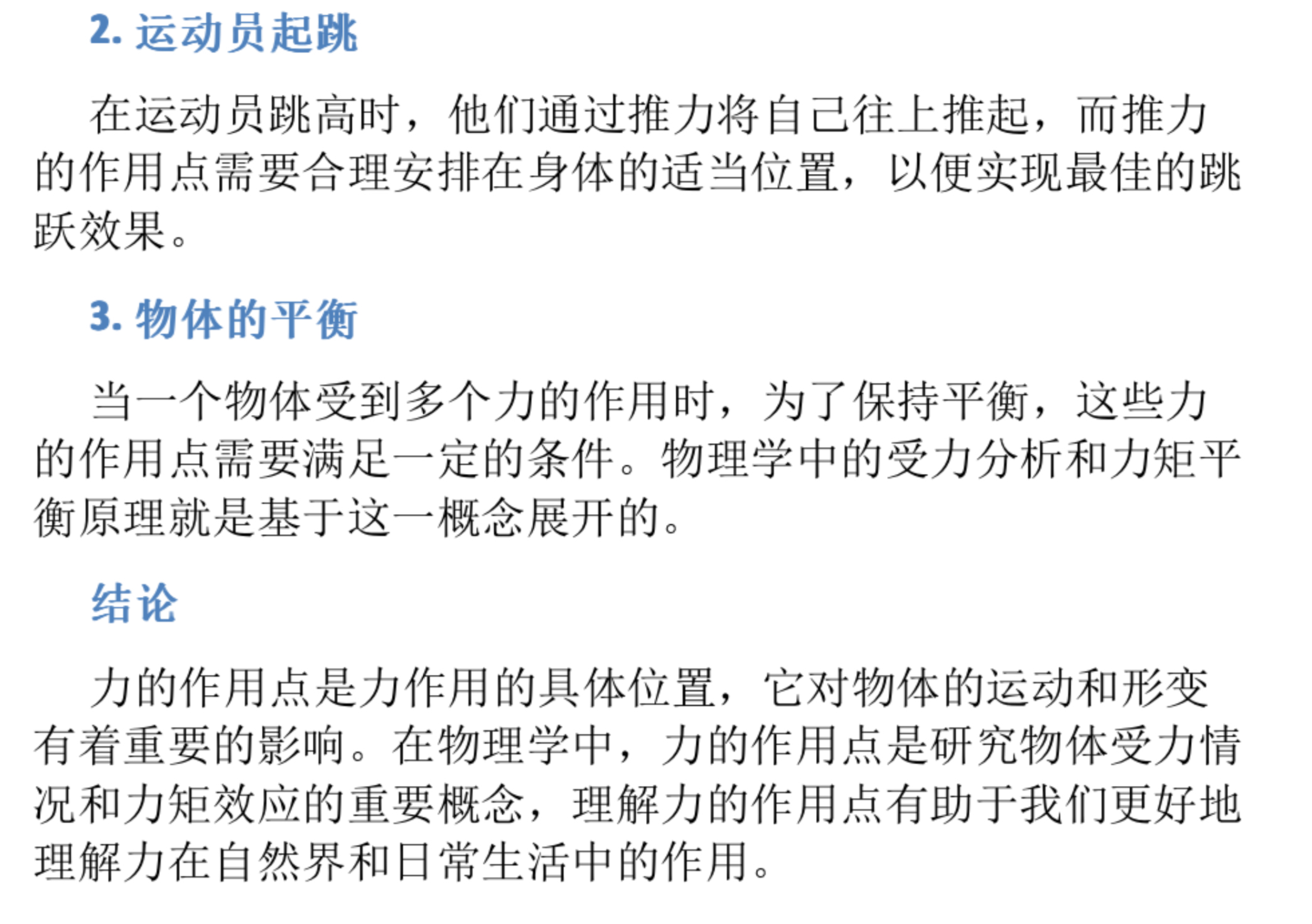 一个力对于这个物体本身造成的一个具有影响的点叫做力的作用点,就像材料所给出的运动员的起跳,需要以一个作用点来改变自己的运动状态,或者又像生活中你把一根绳子挤在一个物体的角上,用力拉这个物体,最后导致这个物体成90度翻转过来一样的概念