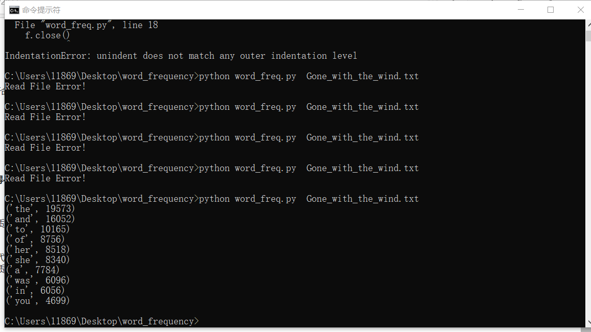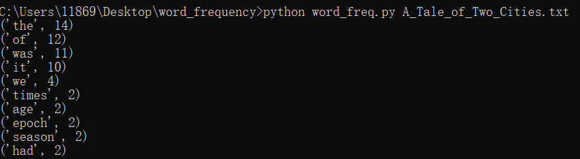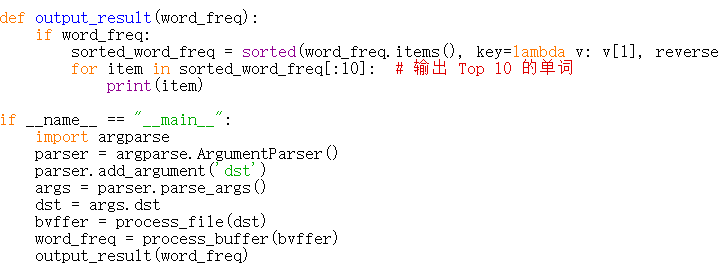 output_result函数传入上面的字典word_freq参数 输出词频前10的单词