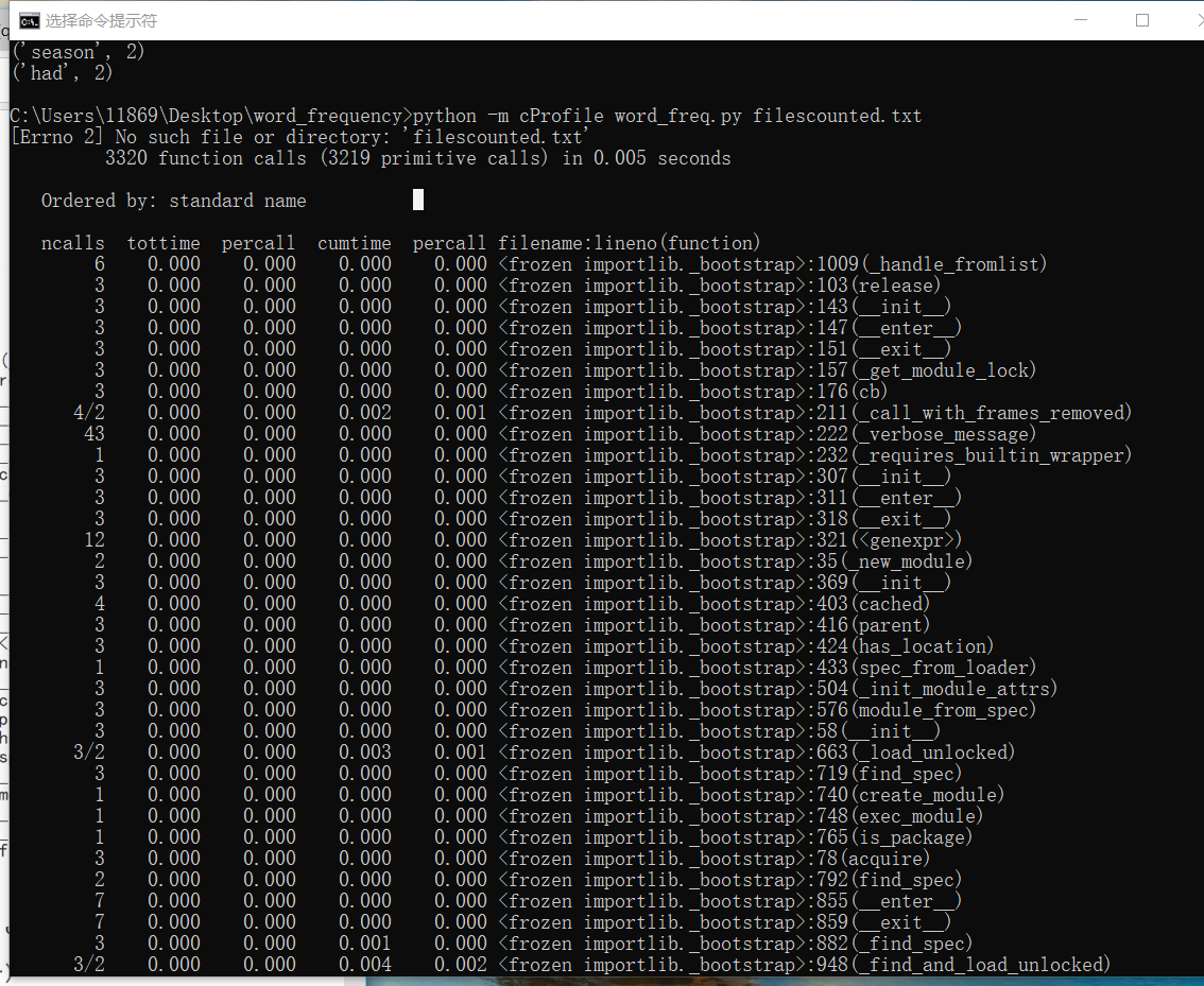 总共有3320次函数调用,程序总共耗时0.005秒
