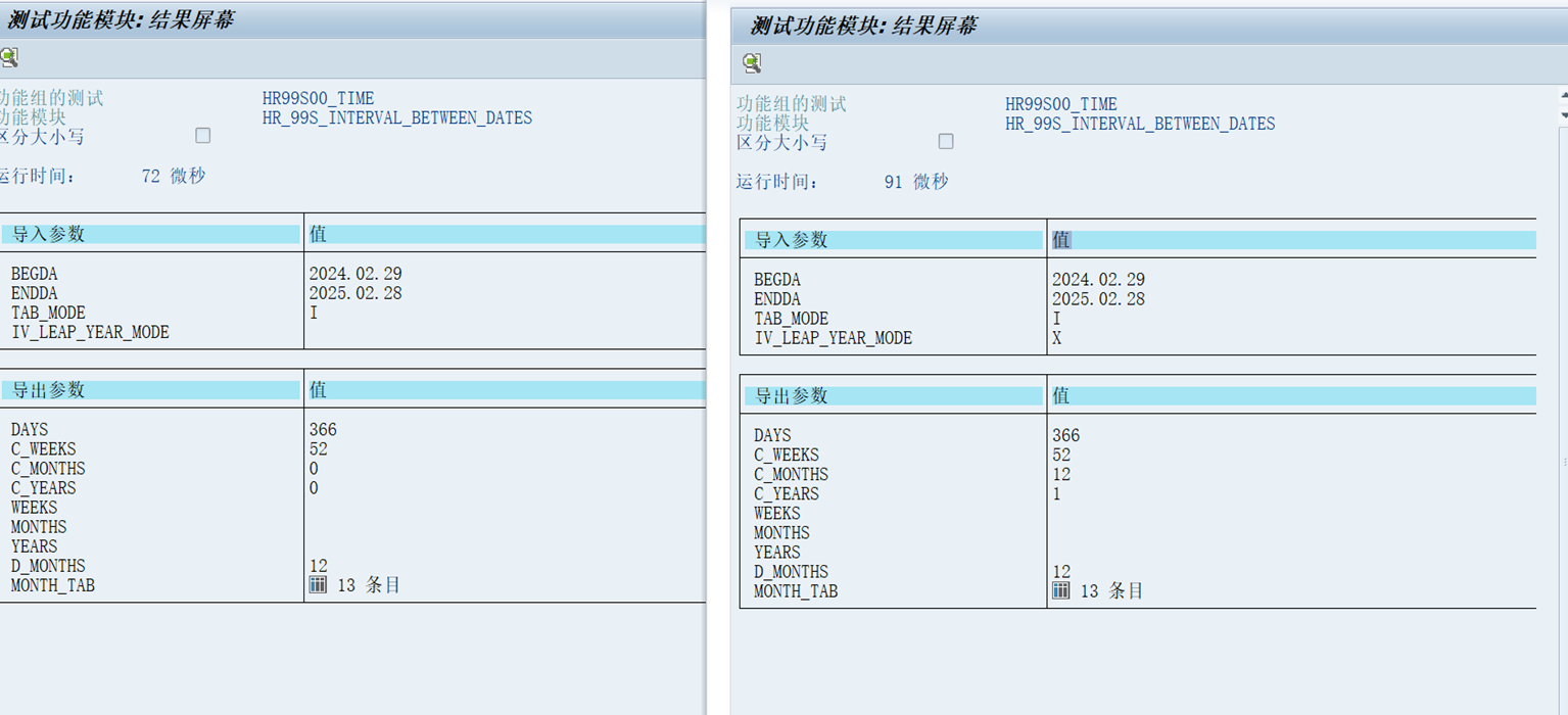 导入参数 IV_LEAP_YEAR_MODE = 'X' 差别 闰年到非闰年时的计算