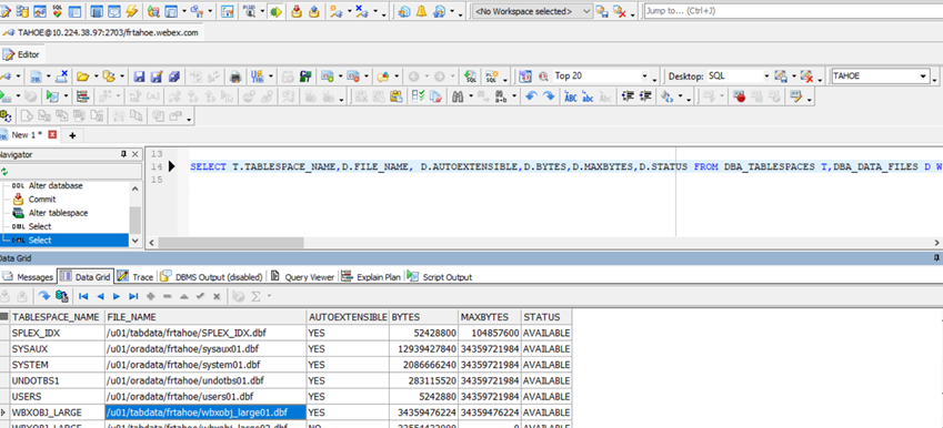 所以表空间 WBXOBJ_LARGE 的存储地址是 /u01/tabdata/frtahoe/wbxobj_large01.dbf