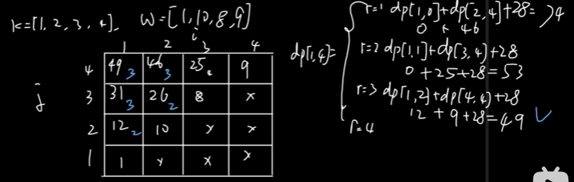 当 i=j 时,表示有一个结点构成的树,其最小期望就是结点权值本身。