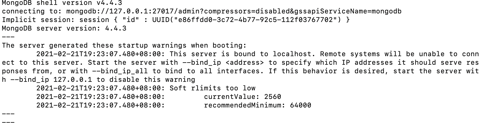 每次开启终端时,如果显示mongod或mongo不存在,执行source ~/.bash_profile就可以了,至于该如何避免每次都执行source ~/.bash_profile,未找到相关答案,各位大佬如有答案,请在评论区中给出,不甚感谢。