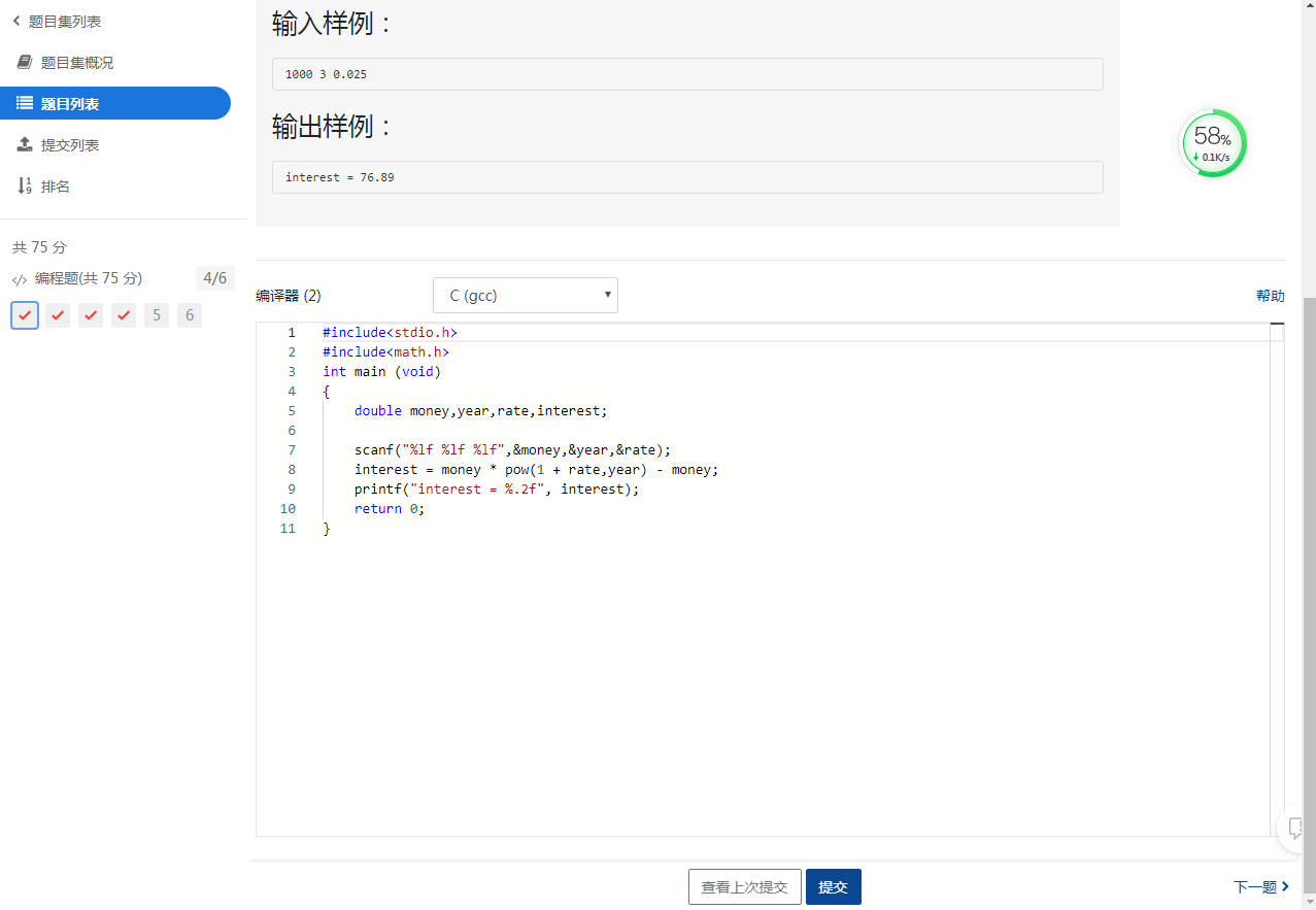 (1)表达式:interest = money * pow(1 + rate,year) - money