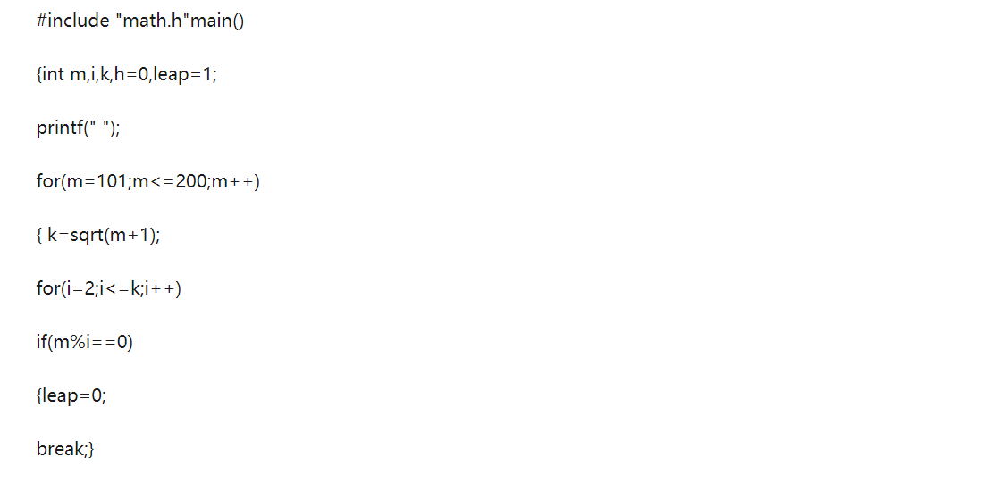 (1)这是算100到200中的素数开始对数进行了赋值,还用了for的循环语句。然后就看不懂了