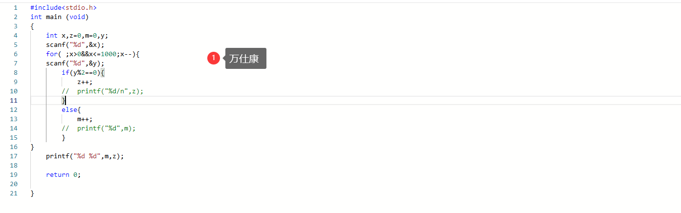 给定N个正整数,请统计奇数和偶数各有多少个?
