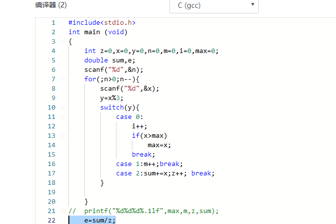 1.2给定 N 个正整数,要求你从中得到下列三种计算结果:A1 = 能被 3 整除的最大整数 A2 = 存在整数 K 使之可以表示为 3K+1 的整数的个数 A3 = 存在整数 K 使之可以表示为 3K+2 的所有整数的平均值(精确到小数点后 1 位
