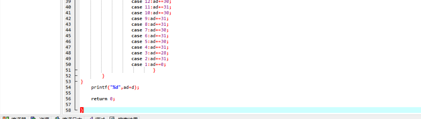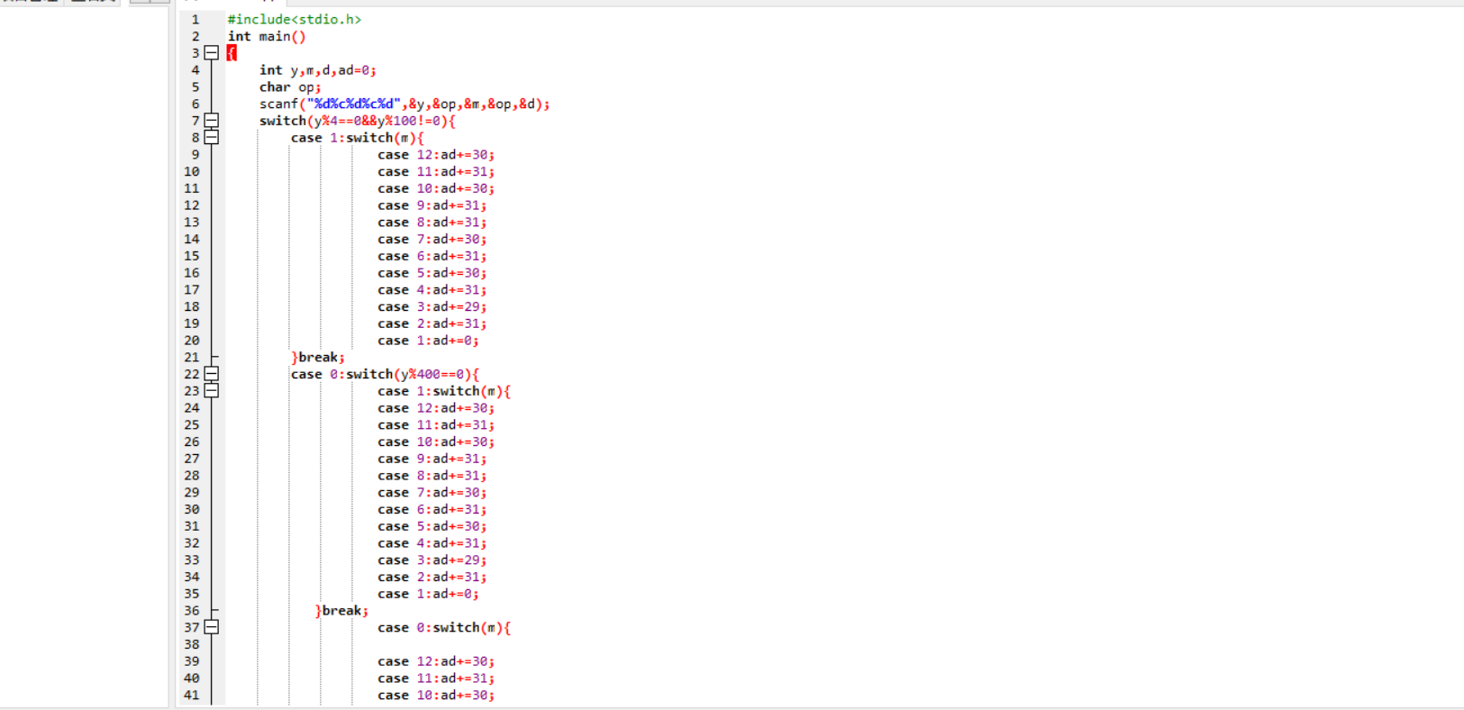 (2)我为了节省代码行就把case语句写在了一起不怎么好看,他的格式比我的好看但是全都是用的switch语句写的代码行很长