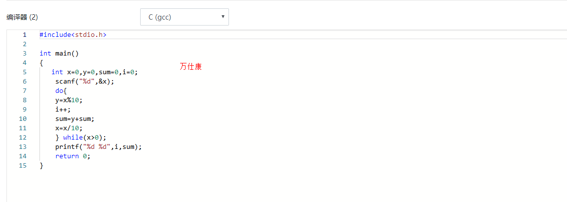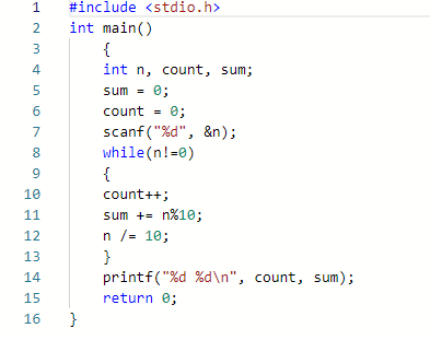 1.1对于给定的正整数N,求它的位数及其各位数字之和。