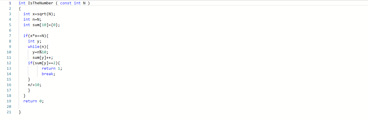 1.1本题要求实现一个函数,判断任一给定整数N是否满足条件:它是完全平方数,又至少有两位数字相同,如144、676等。