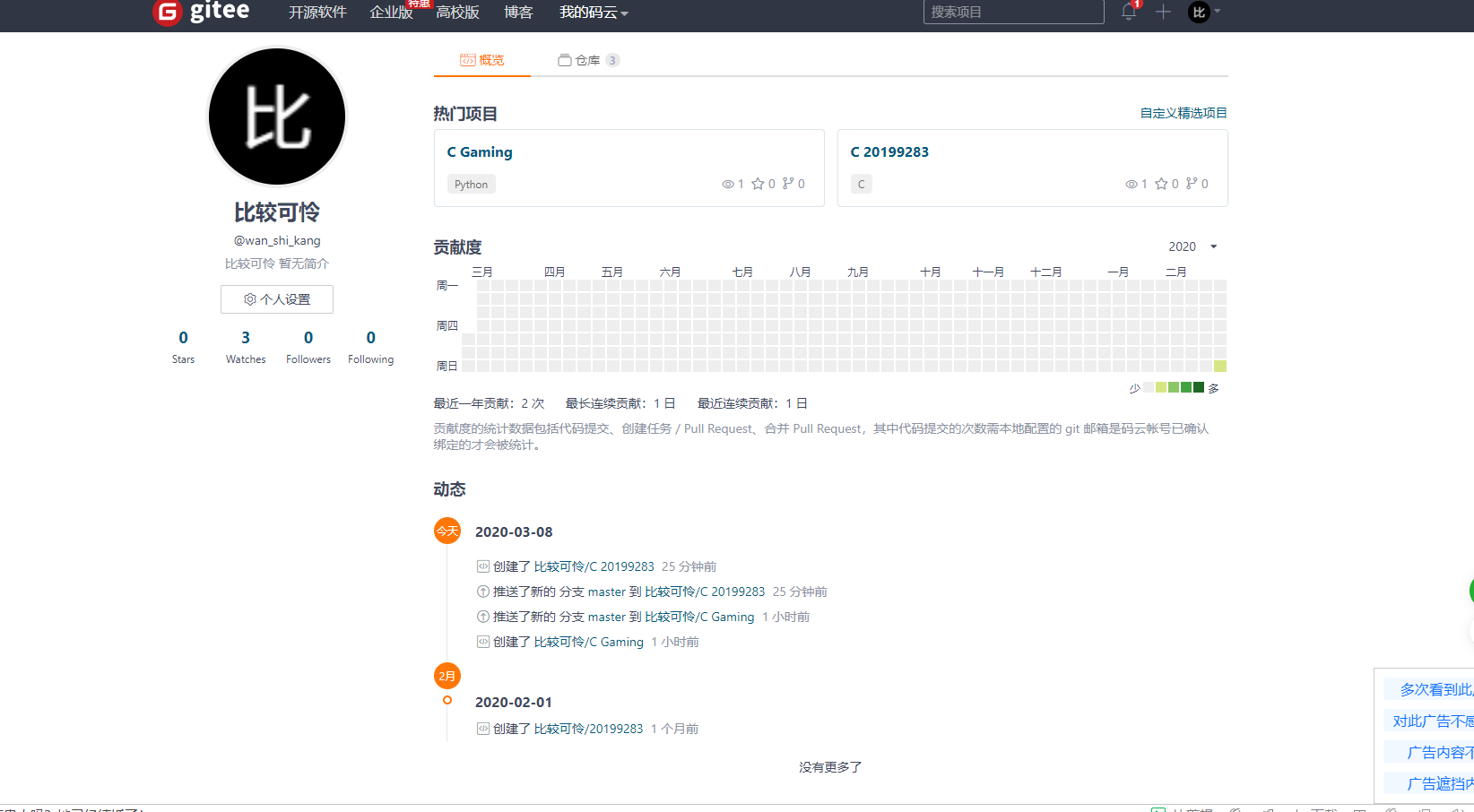 | 这个作业的目标 | 熟悉Gitee 与 git基础命令学习与使用 |