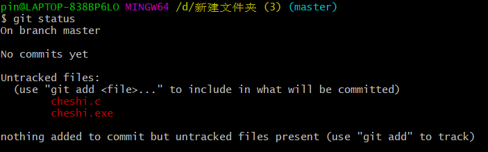 提交新文件:git commit -m "sth"