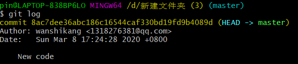 查看提交日志:git log