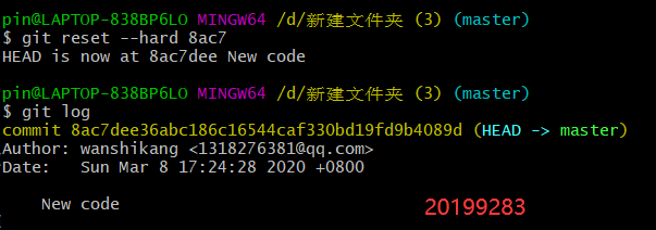 回退到上次修改:git reset --head xxxx