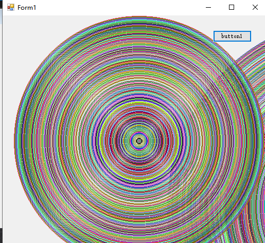 Random r = new Random(); Color getRandomColor() { return Color.FromArgb( r.Next(256), r.Next(256), r.Next(256)); } private void button1_Click_1(object sender, EventArgs e) { Graphics g = this.CreateGraphics(); int x0 = this.Width / 2; int y0 = this.Height / 2; for(int r = 0; r < this.Height / 2; r++) { g.DrawEllipse( new Pen(getRandomColor(),2), x0 - r, y0 - r, r * 2, r * 2 ); } g.Dispose();//释放资源 }