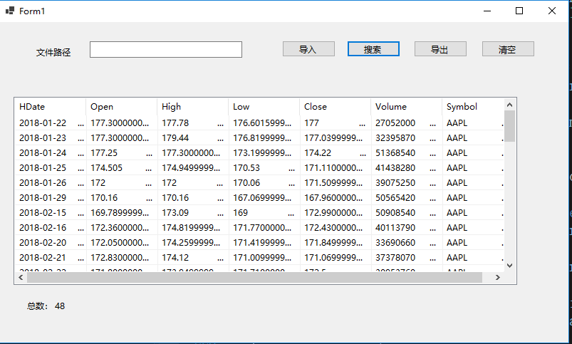 string[] tableheader = { "HDate", "Ope", "High", "Low", "Clos", "Volume", "Symbol" };//HDate,Open,High,Low,Close,Volume,Symbol