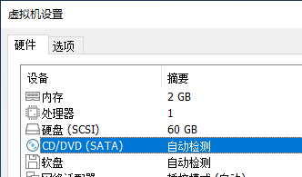 如果 VMware Tool 为灰色 无法点击 只需要在虚拟机的设置中将CD/DVD 和软盘 改为自动检测,然后就可以安装了