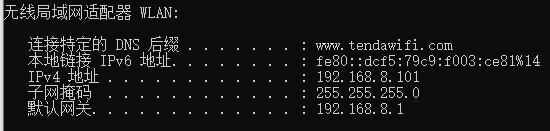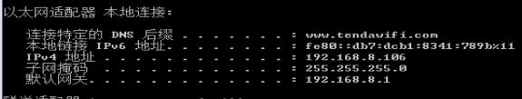 因为主机和服务器都连接在一个无线网上面,所以可以直接打开cmd 输入ipconfig 查看ip地址