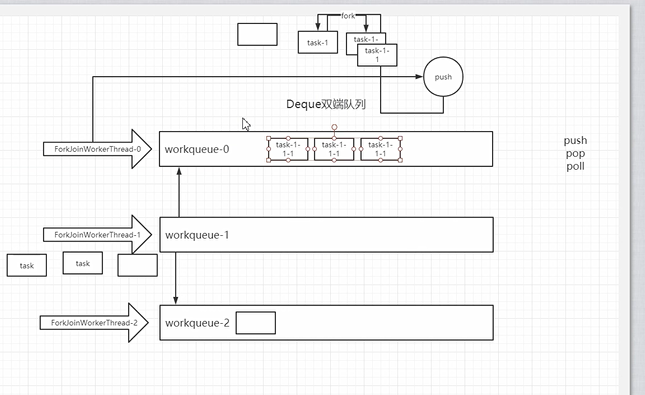 3. 线程操作自身的队列,是使用的push方法,从队尾插入,且从队尾取;线程操作其他线程的队列,采用的是poll.从队头取任务