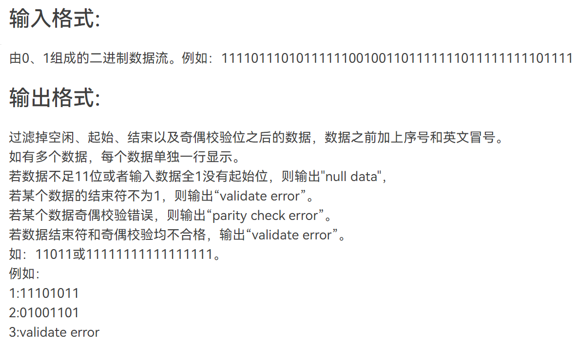 因为需要 数据不足11位或者输入数据全1没有起始位,输出"null data"