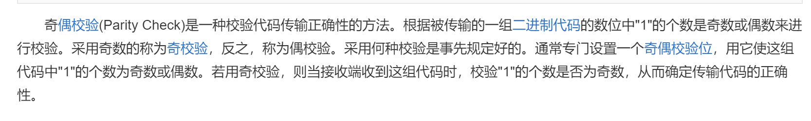1.某个数据奇偶校验错误,则输出“parity check error”。