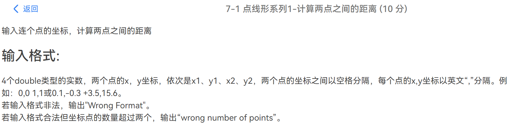 这道题需要实现,输入两个点的坐标,然后求出两个点之间的距离。