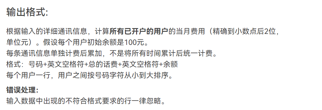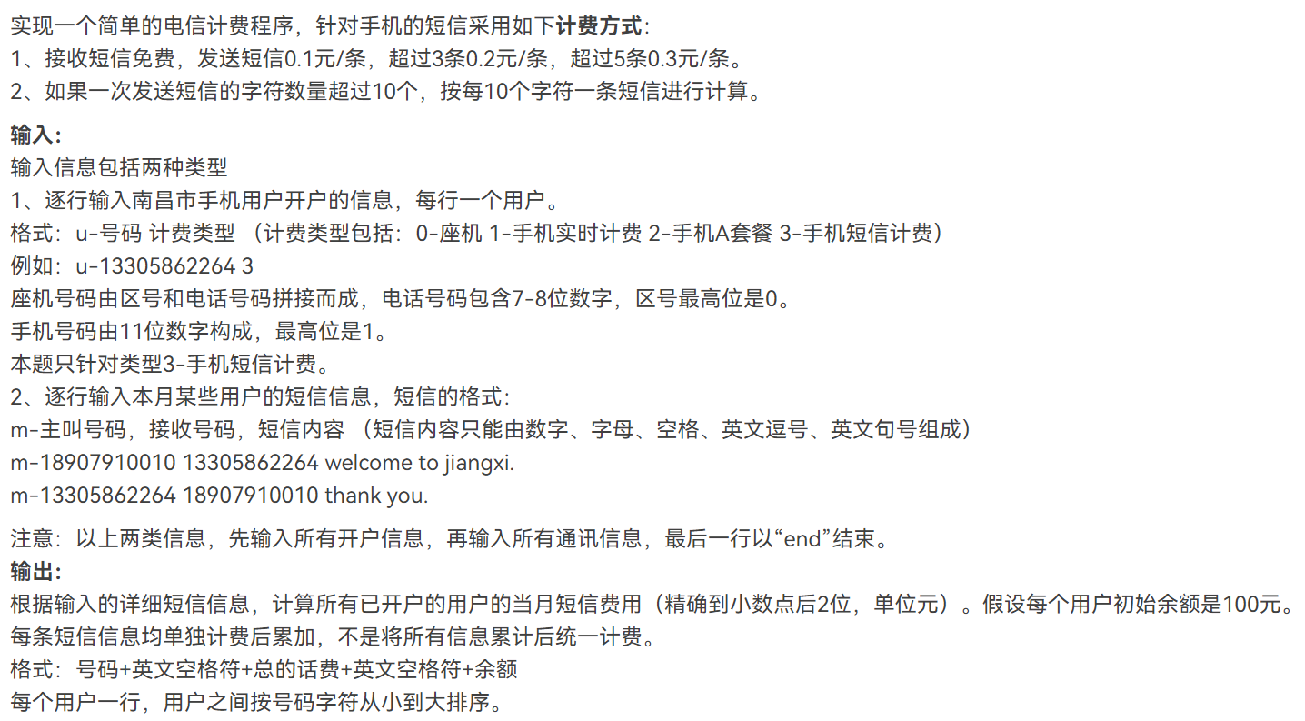 第三次的电信计费相较于前面两次的题目容易了不少,只需要实现短信计费的功能,相较于前面两次的还是比较简单的的题目了。