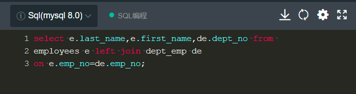 5、查找所有员工的last_name和first_name以及对应部门编号dept_no