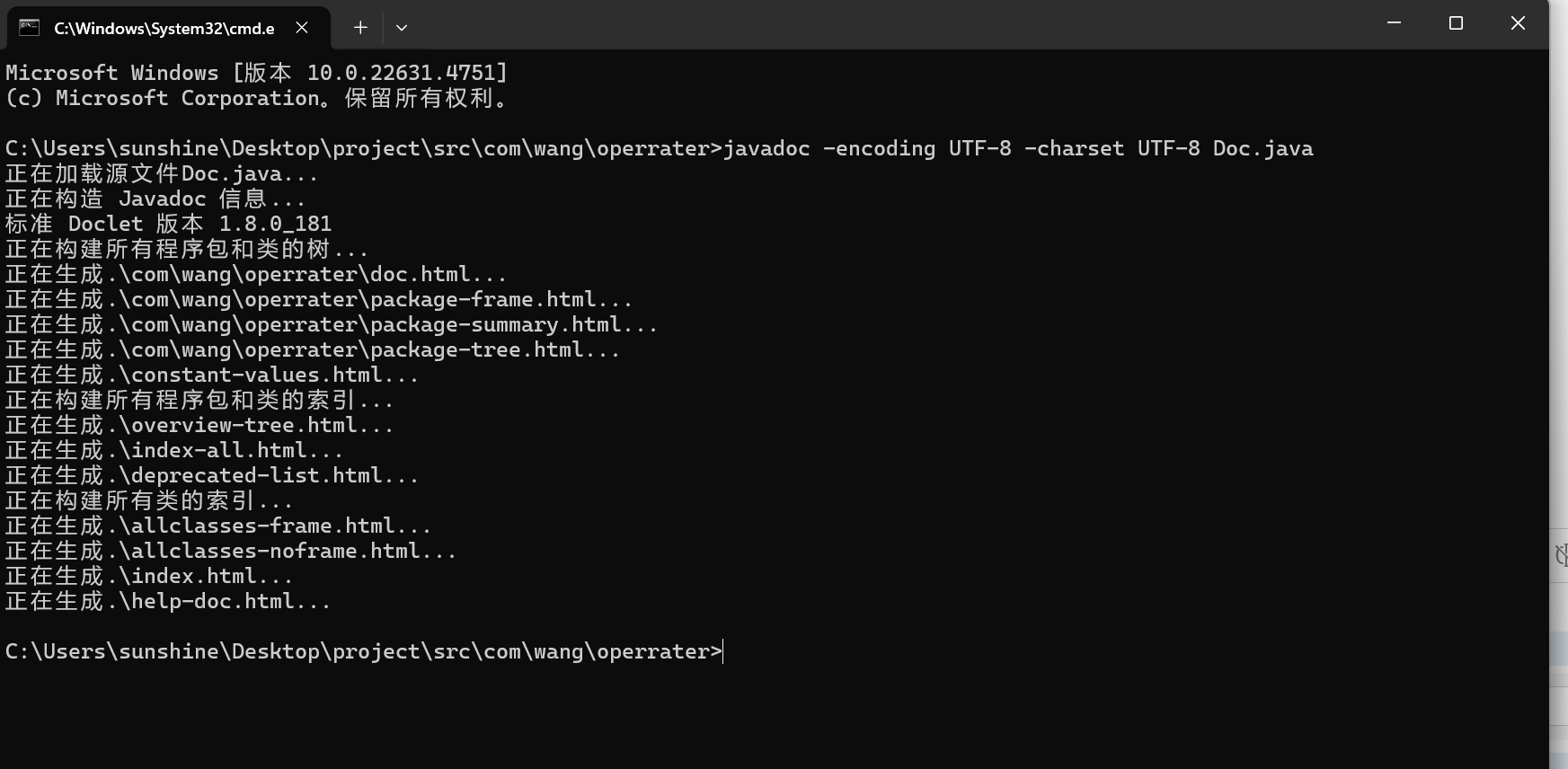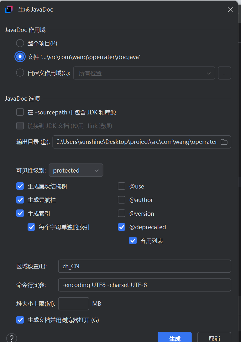 通过命令行生成javadoc文档 javadoc 参数 Java文件