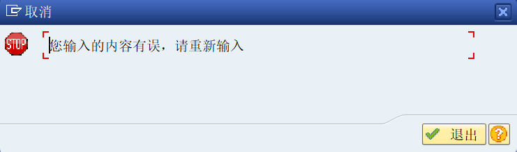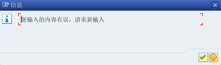 MESSAGE '您输入的内容有误,请重新输入' TYPE 'S'.