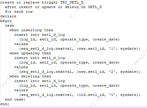 (3)触发器本身:这是关键,也就是我们为什么要创建这个触发器,要用它做什么,触发器的主体,一段pl/sql程序块