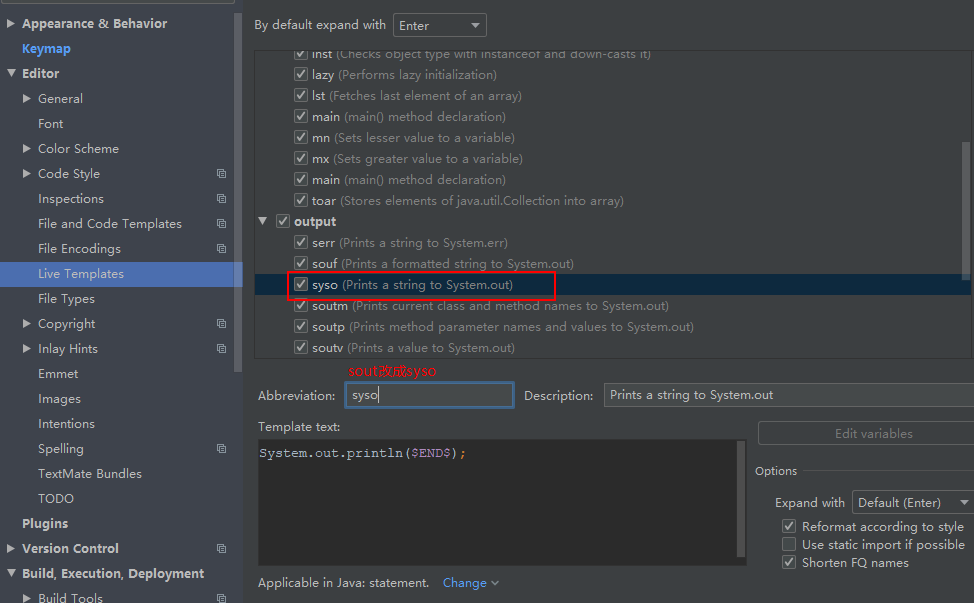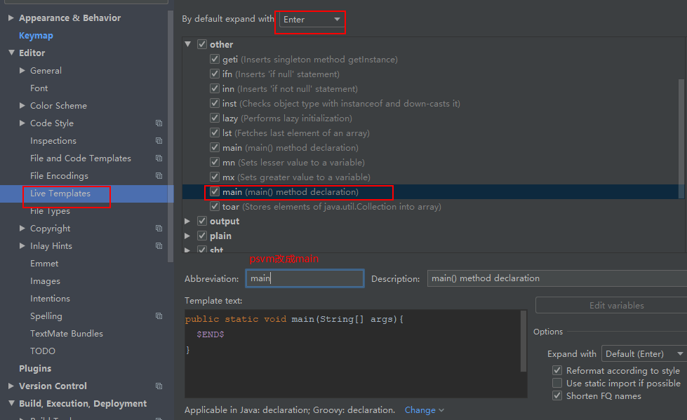 修改main方法快捷方式