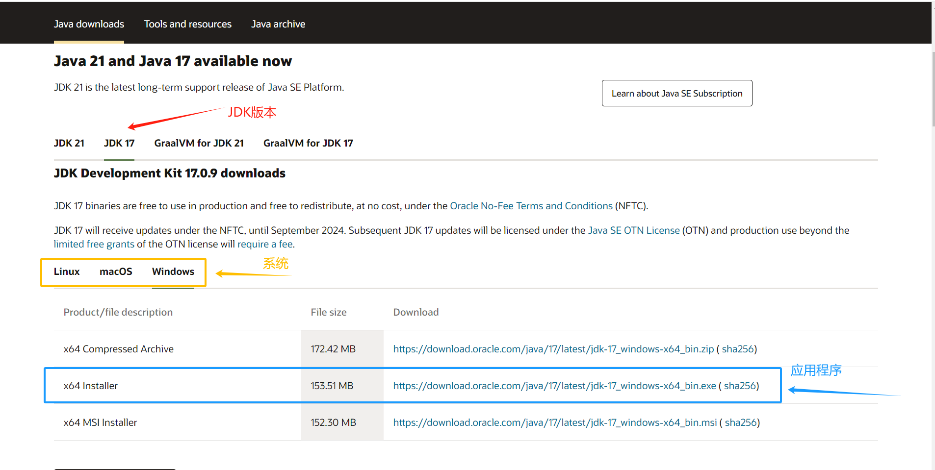 JavaJDK官网:https://www.oracle.com/java/technologies/downloads/#jdk17-windows