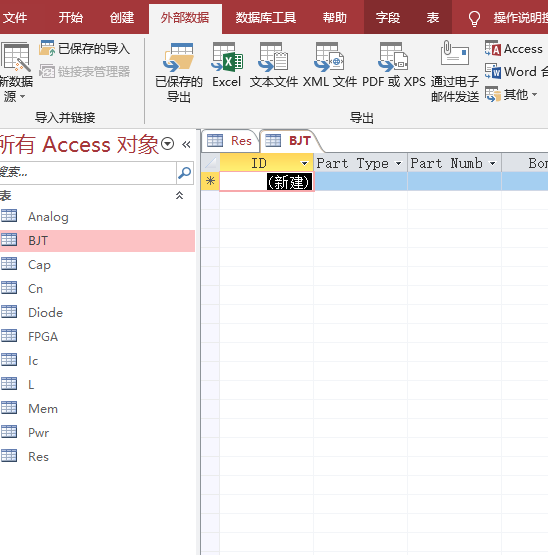 此处导入的表格除了Res表之外都是空表,因每个表格导入的时候选择了“导入第一行列标题”,每个表格中都有元件属性,只是没有内容。此处将所有表格都导入数据库,是起占位作用,后期再添加已有种类的元件的时候,只需要更新数据库,再在orcad中刷新一下就可已了。若需增加新表格需要在orcad中重新配置CIS库,比较麻烦。