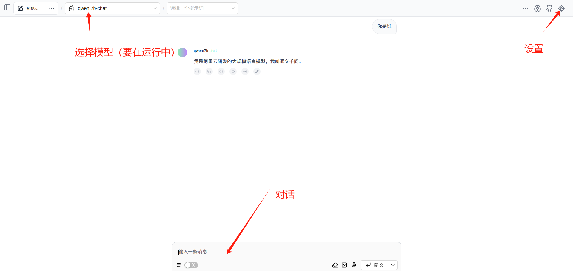 - 然后执行如:ollama run qwen:7b-chat一般几个G,等下载完成后会自动进入,就可以发起问答了,如图